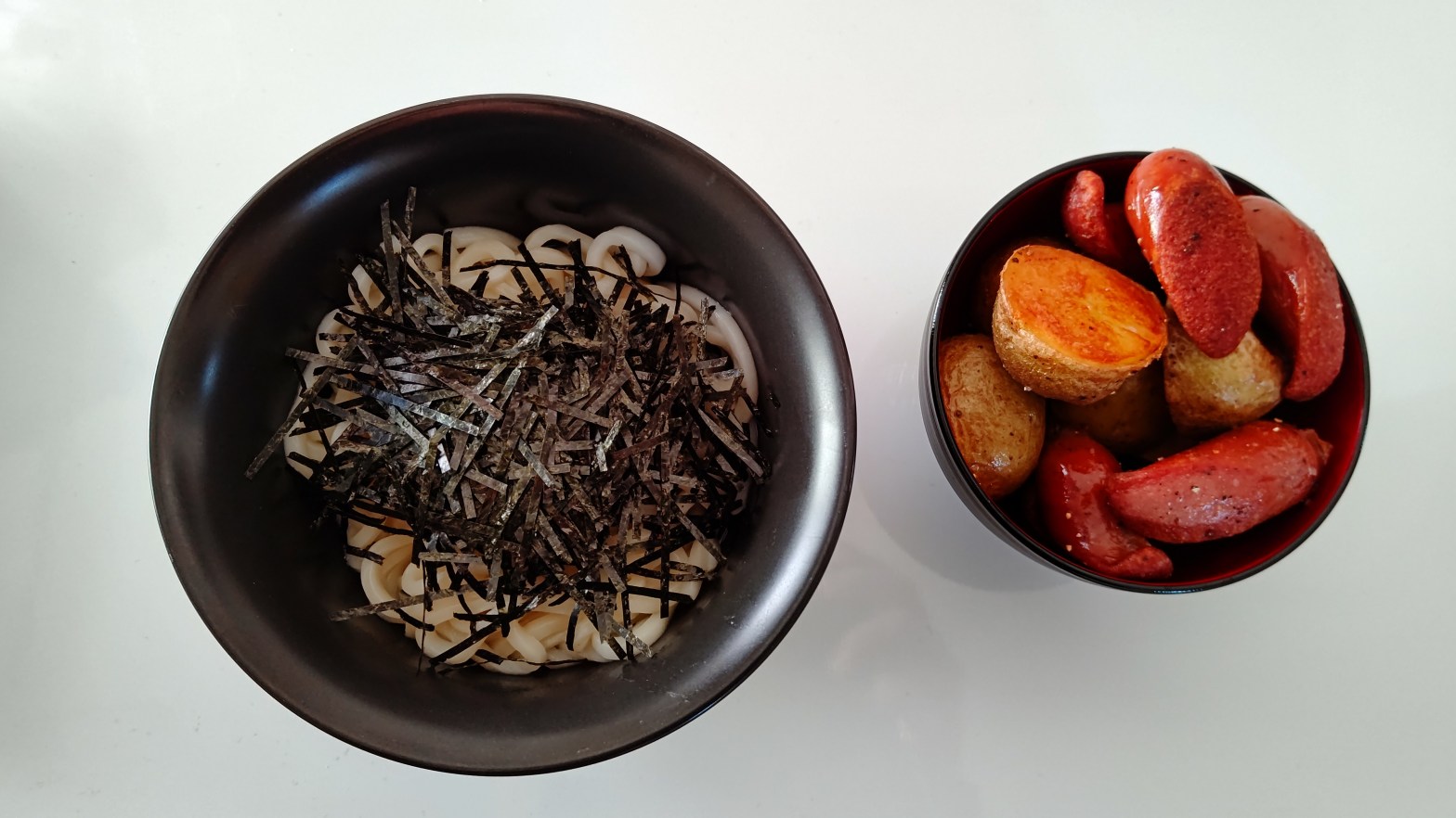 玉子混ぜうどんとジャーマンポテト